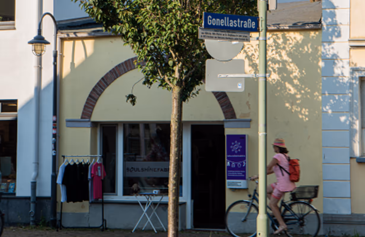 Unser Showroom befindet sich in der schönen Fußgängerzone von Meerbusch Lank. Dort könnt ihr die Qualität von unseren Textilien sowie Veredelungen anfassen und Größen vorher anprobieren.